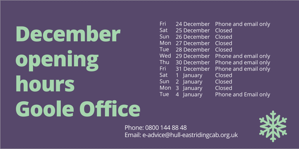 December Opening hours Goole post