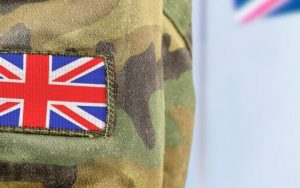 Military,Man,Posing,In,Front,Of,Uk,Flag