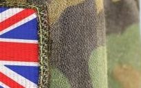 Military,Man,Posing,In,Front,Of,Uk,Flag