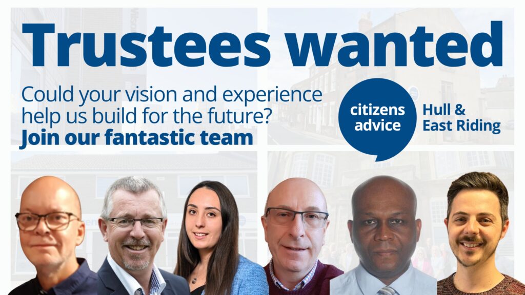 Trustees are the volunteers who lead charities and decide how they are run. At Citizens Advice Hull & East Riding, we currently have six amazing trustees helping to guide our work as a local charity which last year helped more than 24,000 people resolve over 112,000 issues.